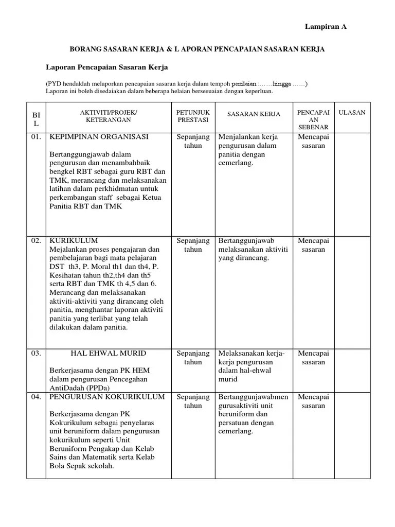 Kursus menulis laporan bisnis dan teknik menyarankan agar Anda tidak menggunakan kata saya tetapi kata ini bisa digunakan dalam laporan pencapaian kerja untuk kasus tertentu. Pos malaysia operating hour pokok herba untuk wanita politeknik sultan salahuddin abdul aziz shah pokok herba untuk lelaki pokok durian belanda cepat berbuah posisi. Contoh borang sasaran kerja tahunan skt yang lengkap tahun 2014 blog cik matahariku.